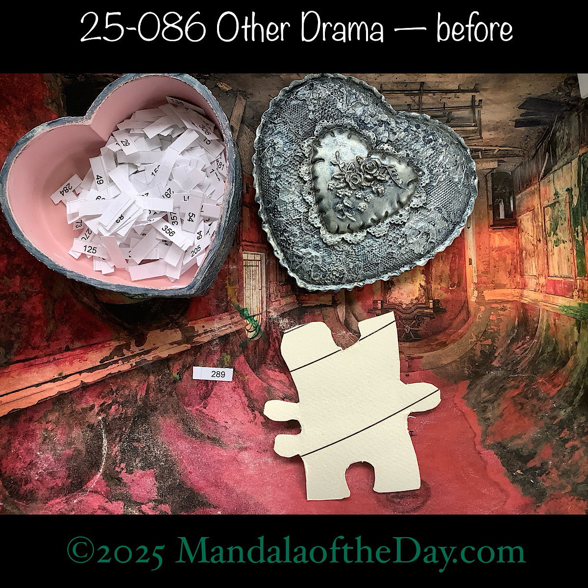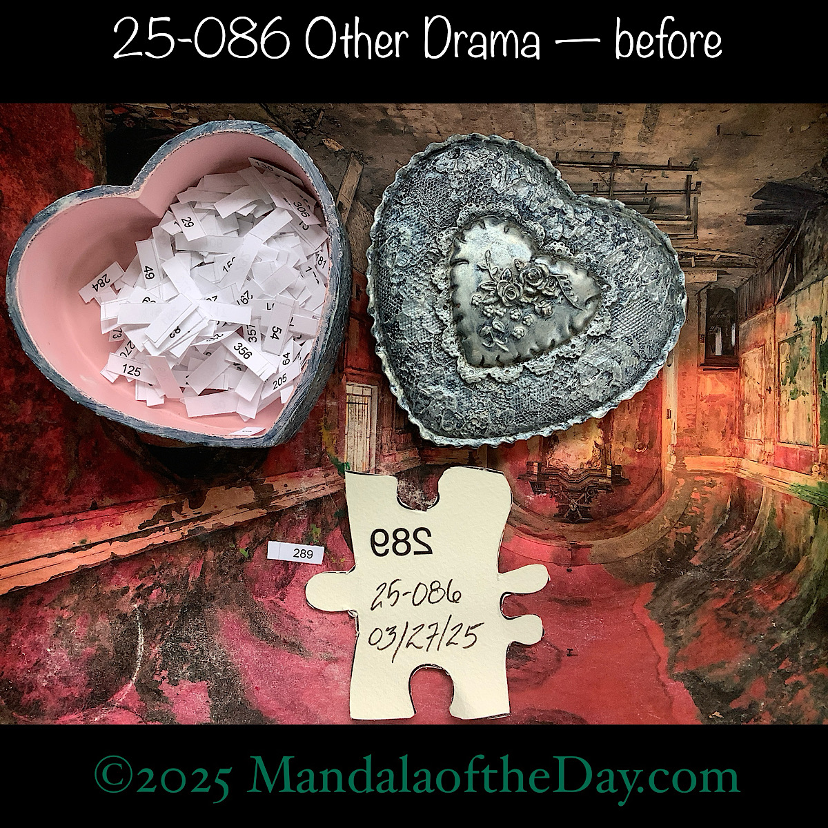 BTW…Here’s the before…the front and back view of today’s puzzle piece and the pretty ceramic box that holds all my numbers from which I randomly choose each day’s puzzle piece number: