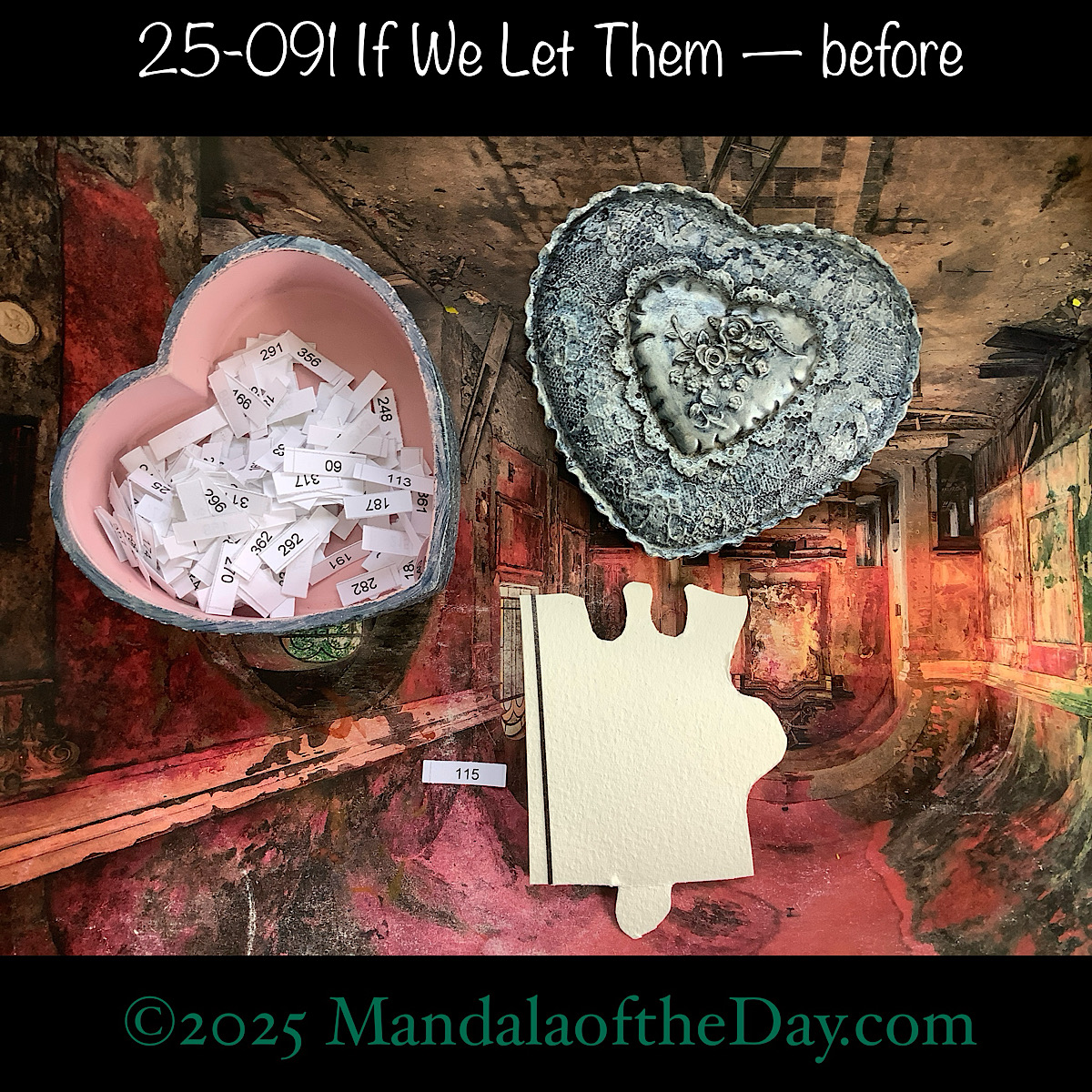 BTW…Here’s the before…the front and back view of today’s puzzle piece and the pretty ceramic box that holds all my numbers from which I randomly choose each day’s puzzle piece number: