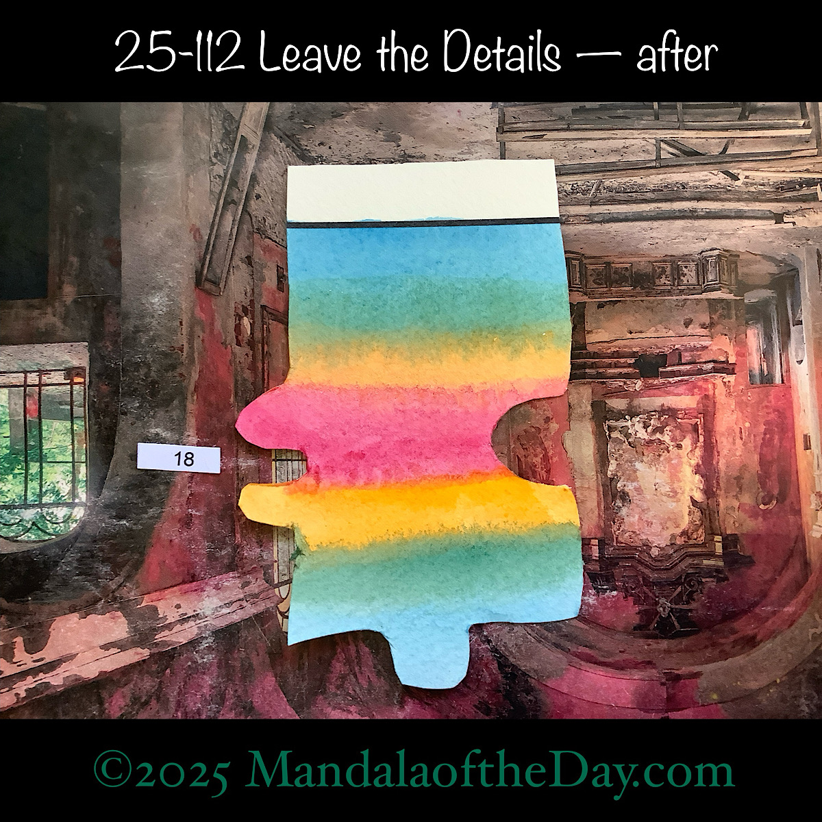 Throughout the year, I’ll be building one large (48”x48”) Tibetan-styled Mandala one piece at a time…one puzzle piece at a time, that is. The mandala design and the reversed puzzle side were printed on artist-quality watercolor paper. The forward facing puzzle side was printed on a 48”x48” wood panel.
