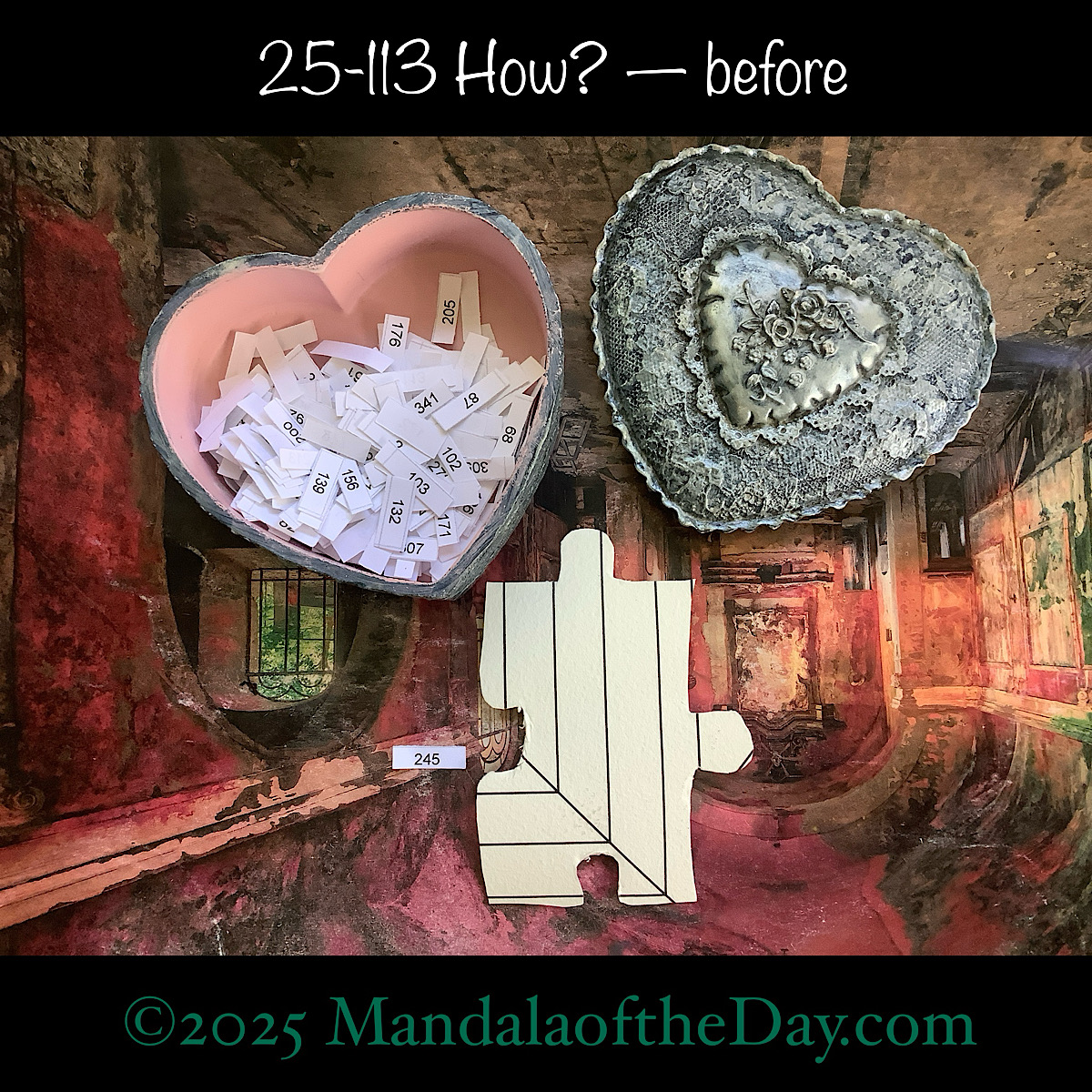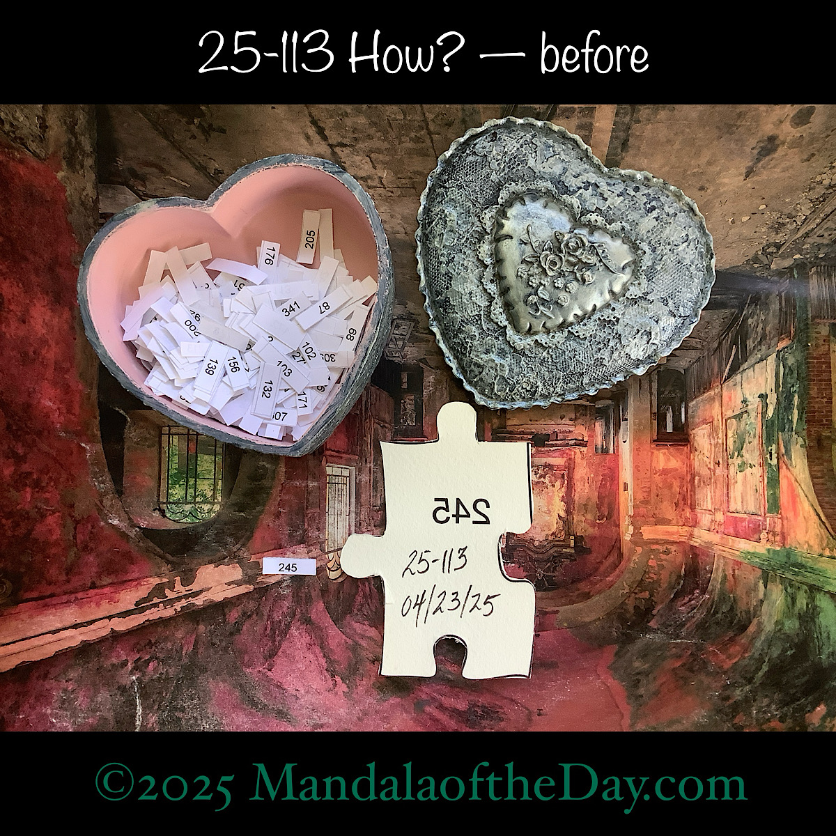 BTW…Here’s the before…the front and back view of today’s puzzle piece and the pretty ceramic box that holds all my numbers from which I randomly choose each day’s puzzle piece number: