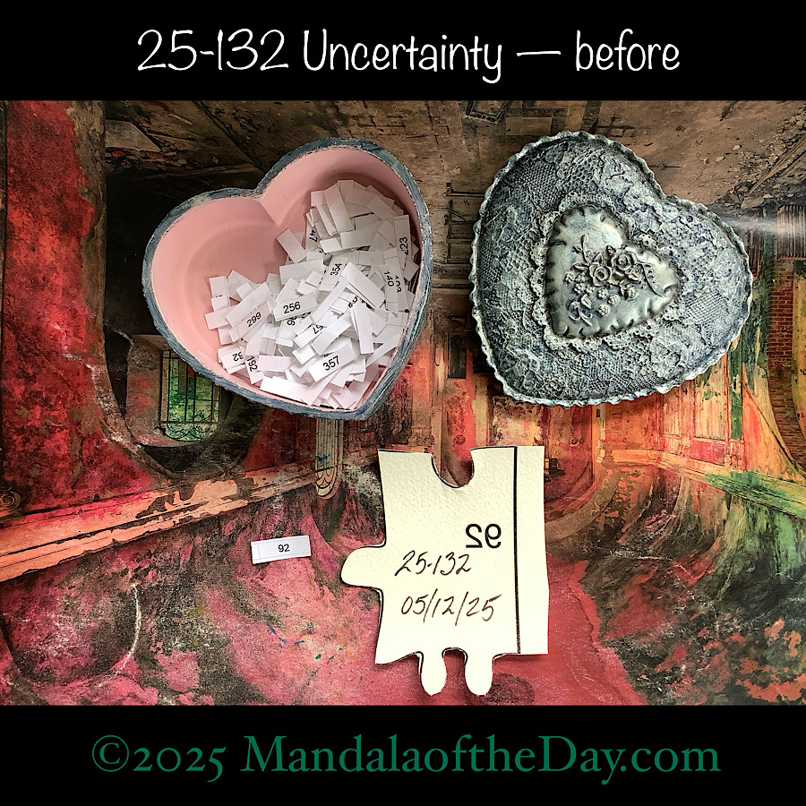 BTW…Here’s the before…the front and back view of today’s puzzle piece and the pretty ceramic box that holds all my numbers from which I randomly choose each day’s puzzle piece number: