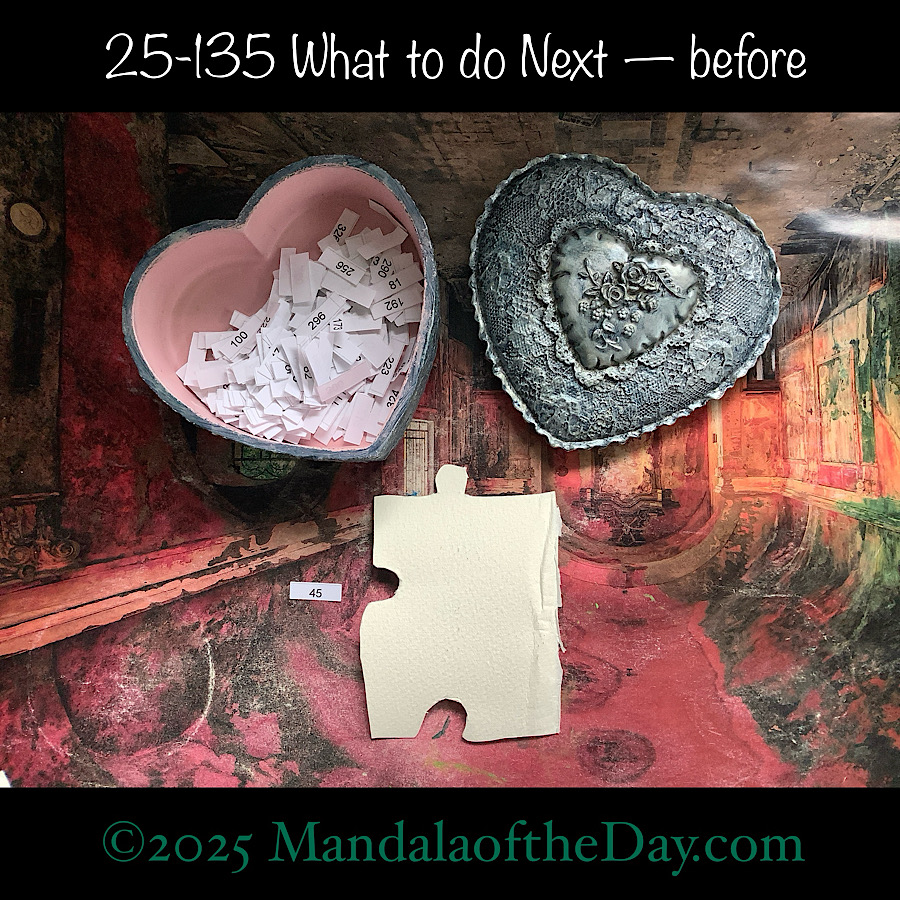 BTW…Here’s the before…the front and back view of today’s puzzle piece and the pretty ceramic box that holds all my numbers from which I randomly choose each day’s puzzle piece number:
