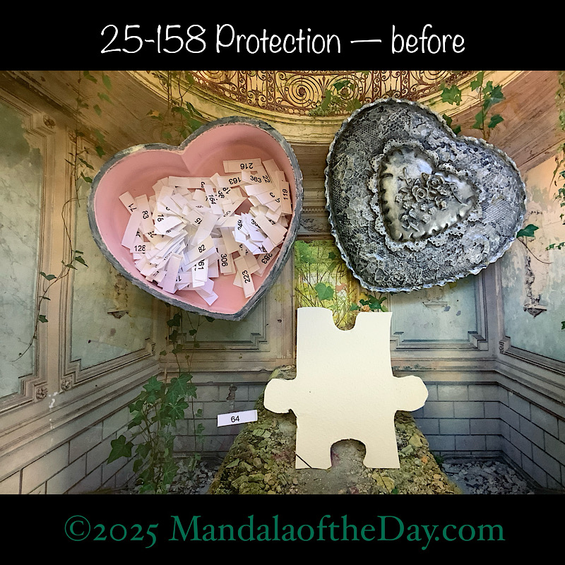 BTW…Here’s the before…the front and back view of today’s puzzle piece and the pretty ceramic box that holds all my numbers from which I randomly choose each day’s puzzle piece number: