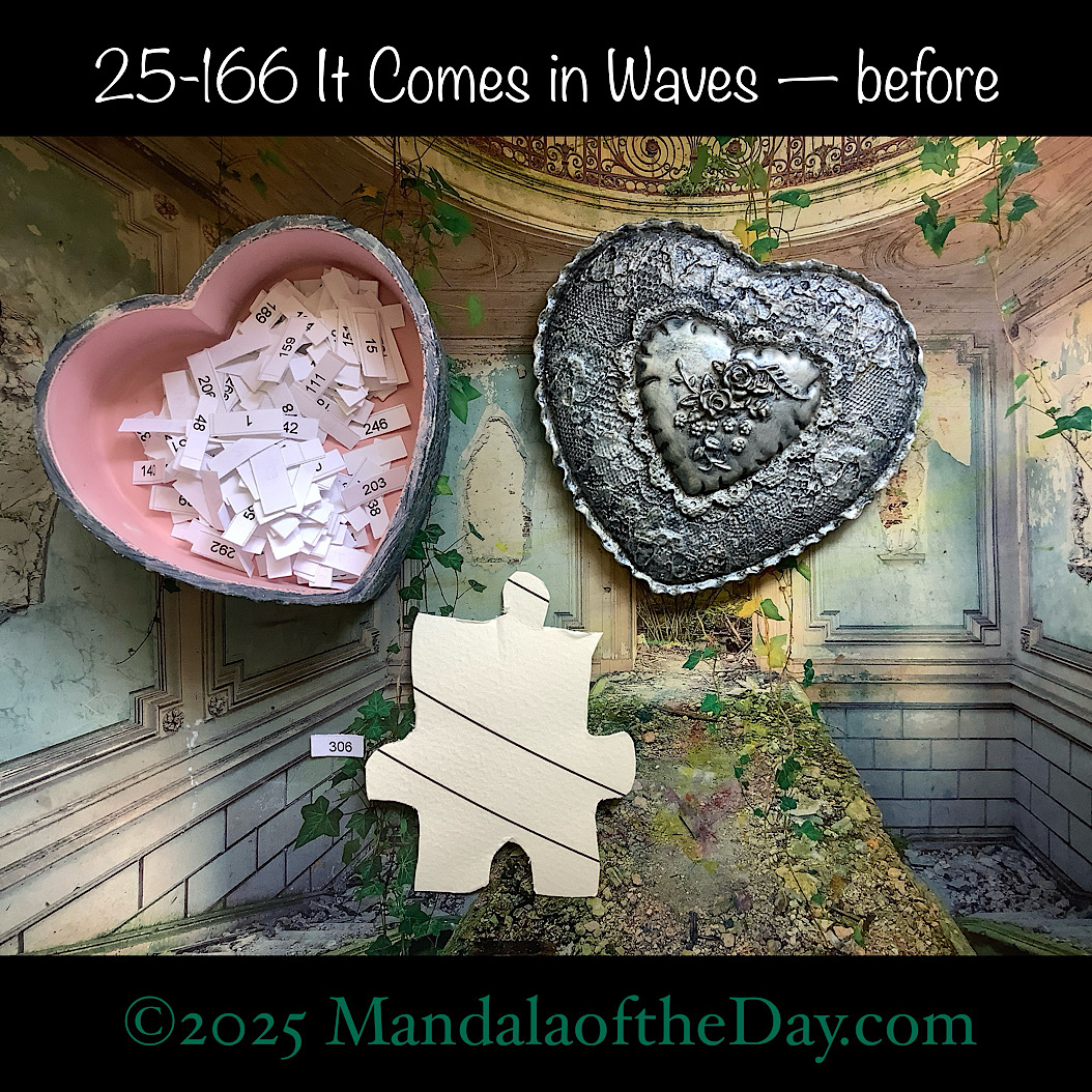 BTW…Here’s the before…the front and back view of today’s puzzle piece and the pretty ceramic box that holds all my numbers from which I randomly choose each day’s puzzle piece number: