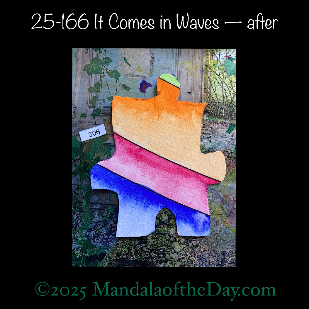 Each day, at random, I’ll be painting in watercolors one of the 365 watercolor puzzle pieces, that by the end of the year will become Archangel Mandala #4. Read more about the Archangel Series. The word/message for each piece will be inspired by Melody Beattie’s book “52 Weeks of Conscious Contact”.