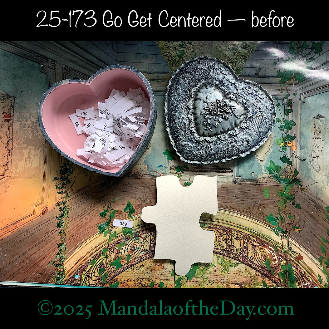BTW…Here’s the before…the front and back view of today’s puzzle piece and the pretty ceramic box that holds all my numbers from which I randomly choose each day’s puzzle piece number: