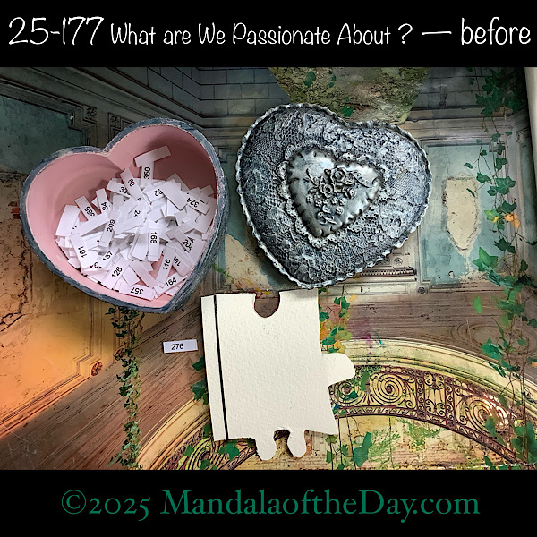 BTW…Here’s the before…the front and back view of today’s puzzle piece and the pretty ceramic box that holds all my numbers from which I randomly choose each day’s puzzle piece number: