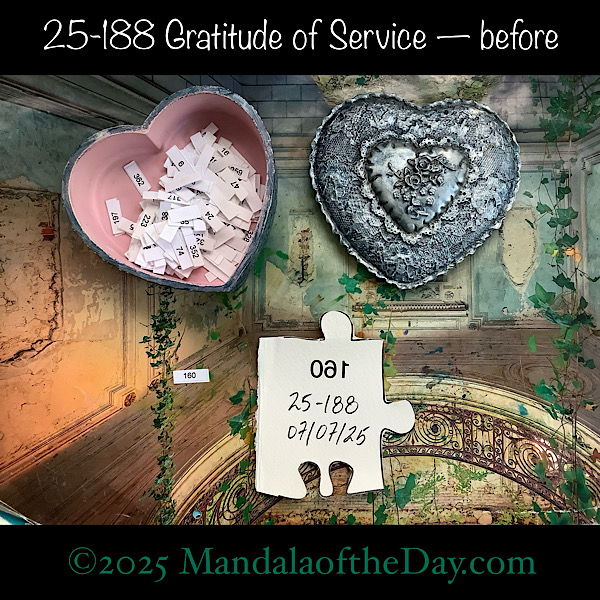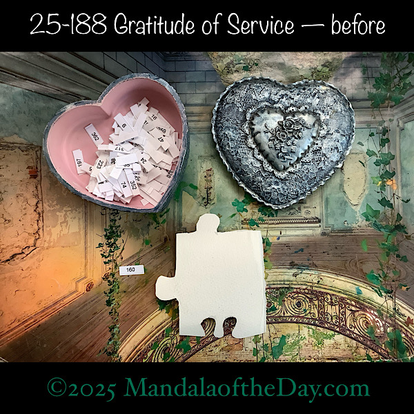 BTW…Here’s the before…the front and back view of today’s puzzle piece and the pretty ceramic box that holds all my numbers from which I randomly choose each day’s puzzle piece number: