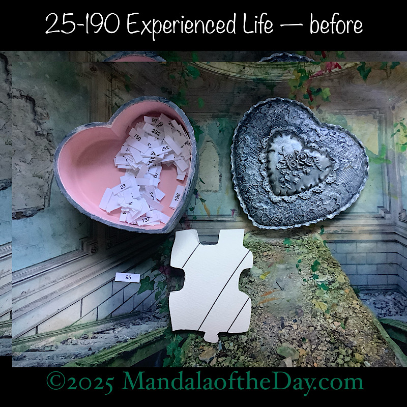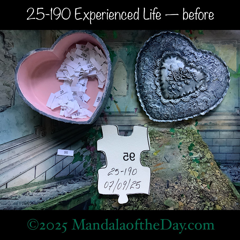 BTW…Here’s the before…the front and back view of today’s puzzle piece and the pretty ceramic box that holds all my numbers from which I randomly choose each day’s puzzle piece number: