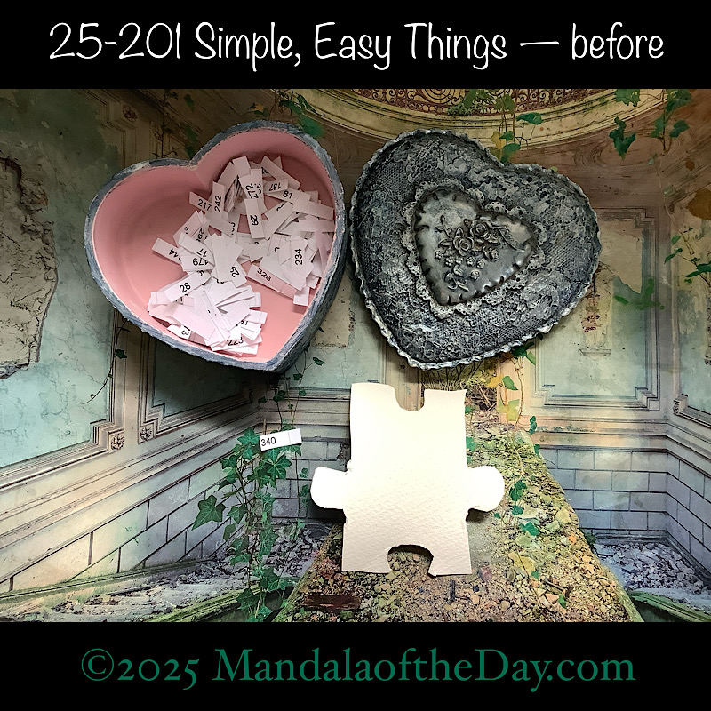 BTW…Here’s the before…the front and back view of today’s puzzle piece and the pretty ceramic box that holds all my numbers from which I randomly choose each day’s puzzle piece number: