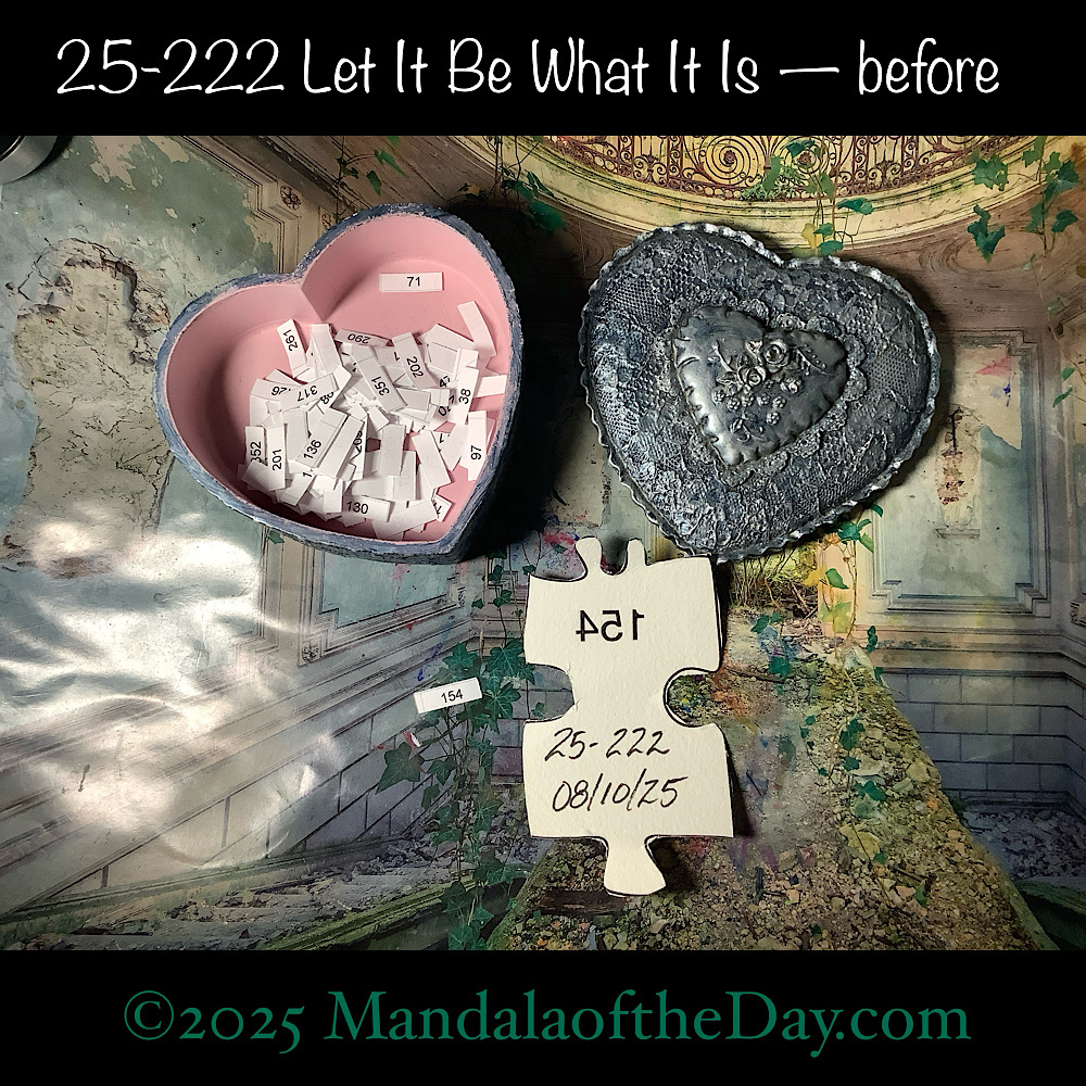 BTW…Here’s the before…the front and back view of today’s puzzle piece and the pretty ceramic box that holds all my numbers from which I randomly choose each day’s puzzle piece number: