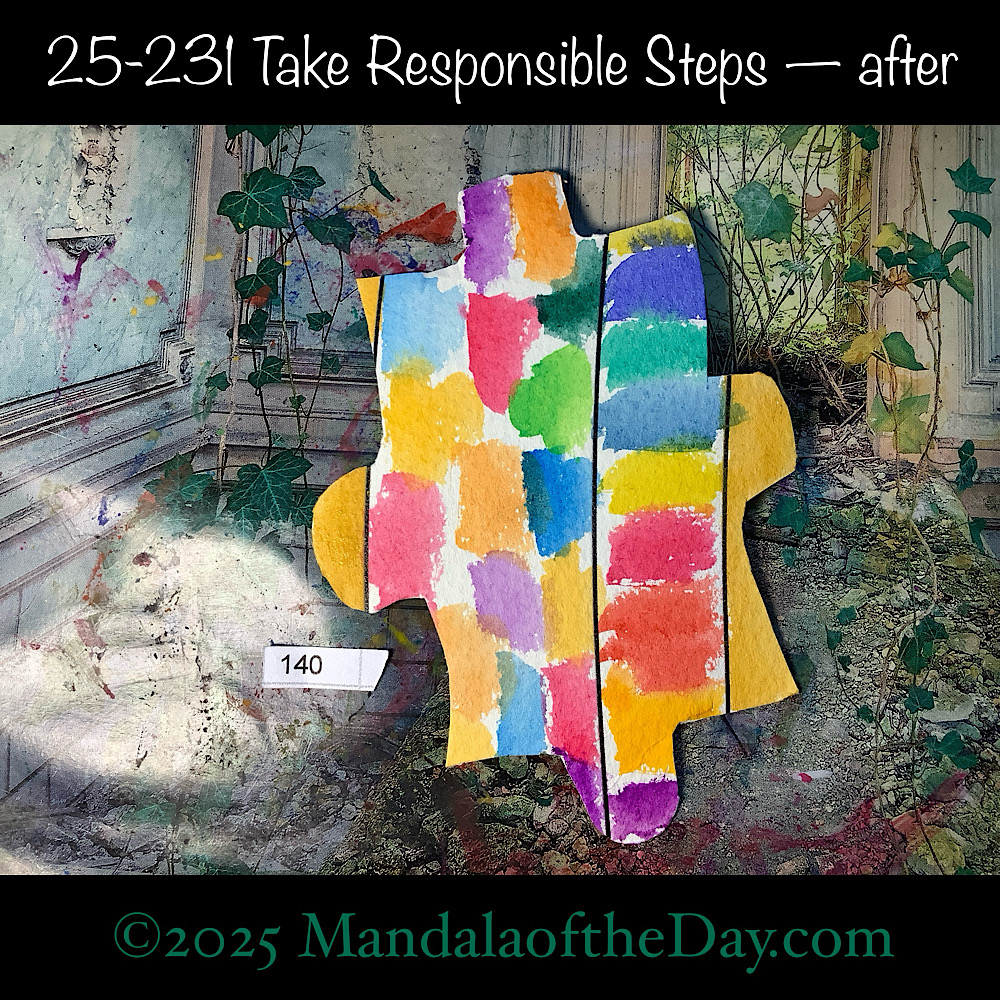 Each day, at random, I’ll be painting in watercolors one of the 365 watercolor puzzle pieces, that by the end of the year will become Archangel Mandala #4. Read more about the Archangel Series. The word/message for each piece will be inspired by Melody Beattie’s book “52 Weeks of Conscious Contact”.