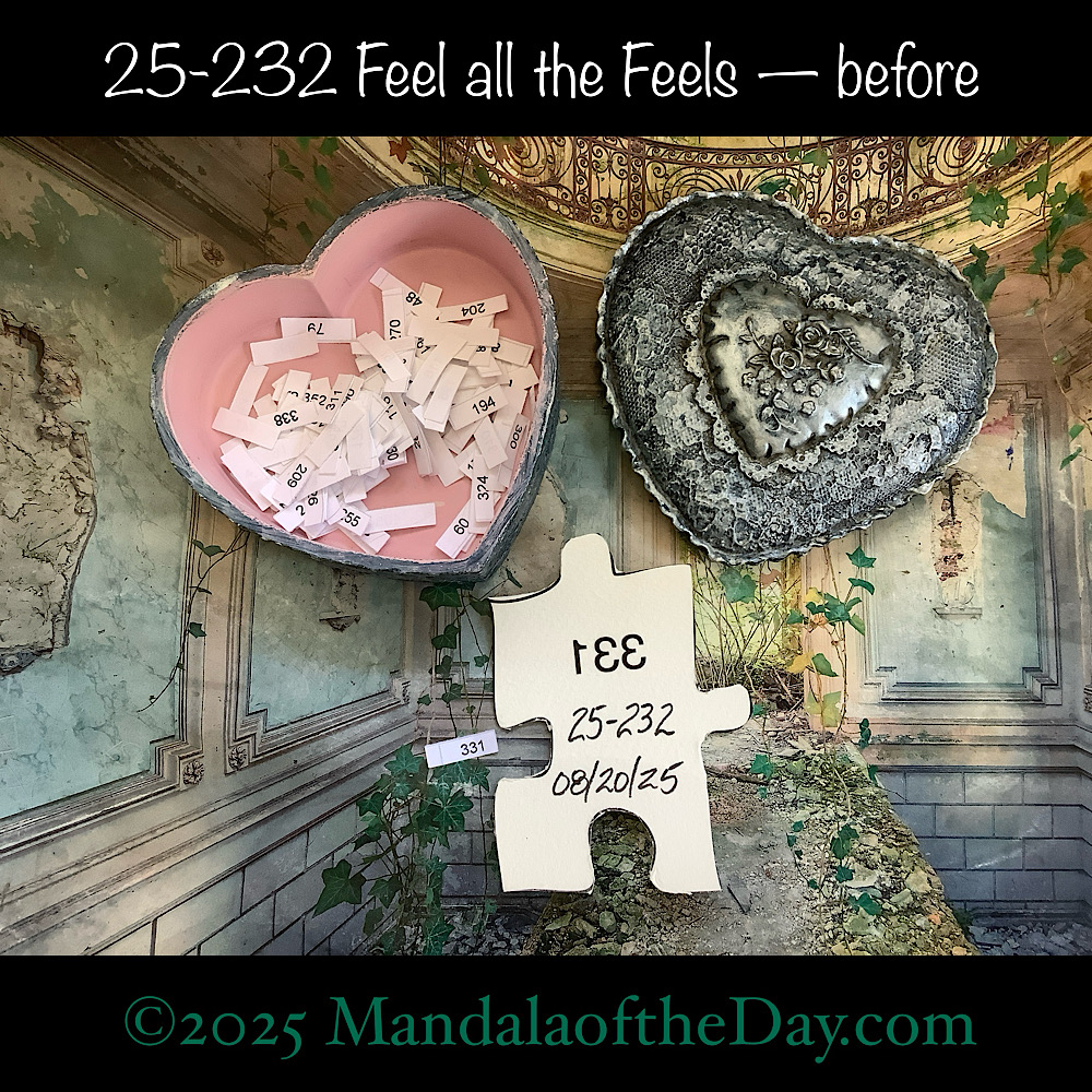 BTW…Here’s the before…the front and back view of today’s puzzle piece and the pretty ceramic box that holds all my numbers from which I randomly choose each day’s puzzle piece number:
