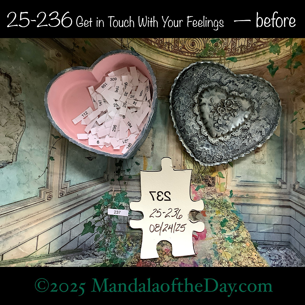 BTW…Here’s the before…the front and back view of today’s puzzle piece and the pretty ceramic box that holds all my numbers from which I randomly choose each day’s puzzle piece number:
