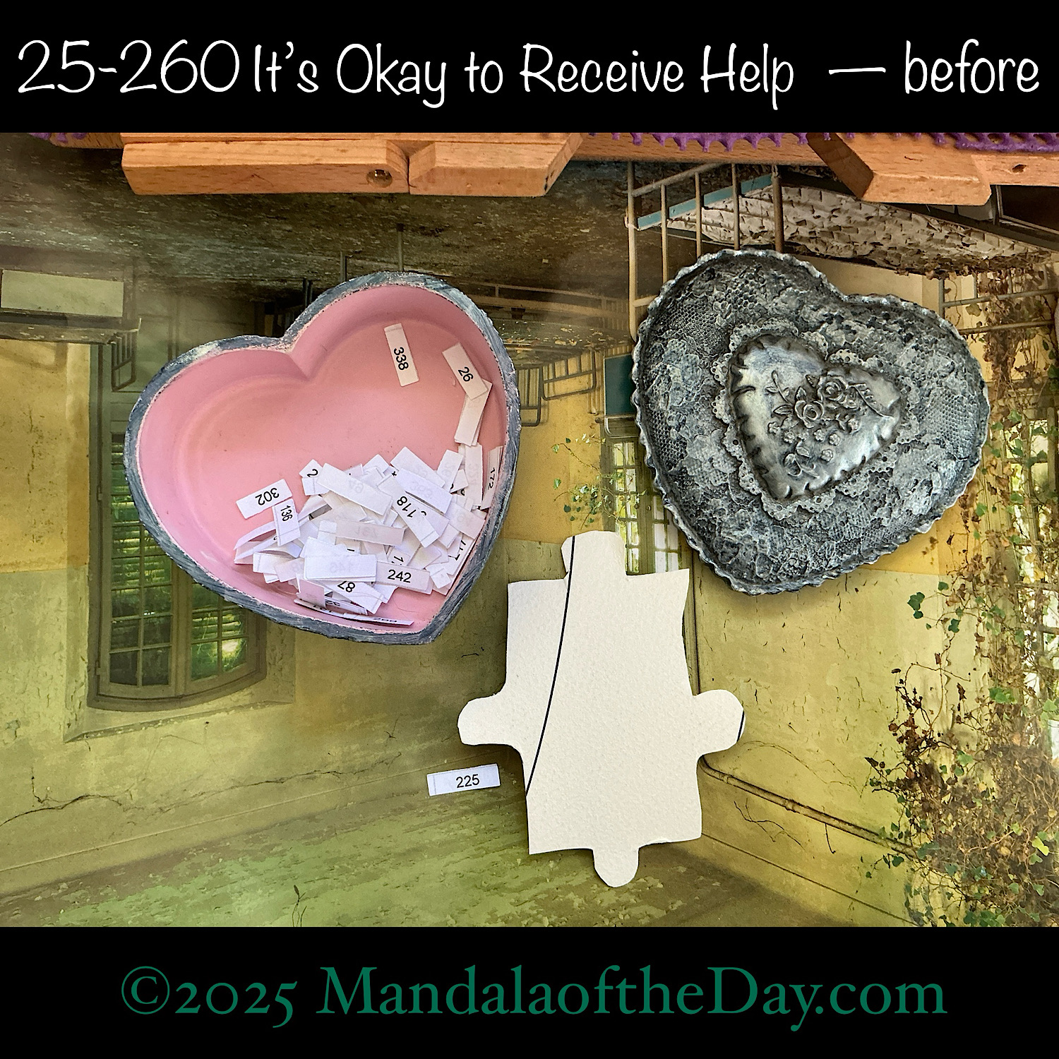 BTW…Here’s the before…the front and back view of today’s puzzle piece and the pretty ceramic box that holds all my numbers from which I randomly choose each day’s puzzle piece number: