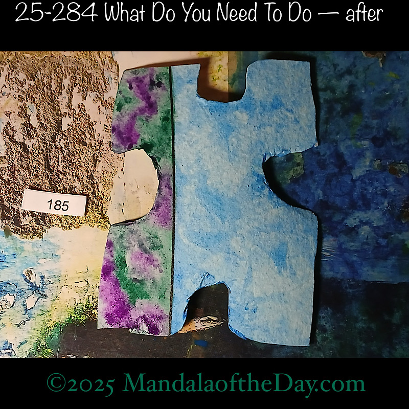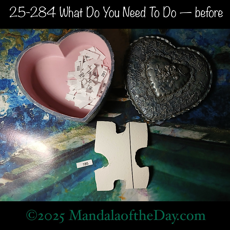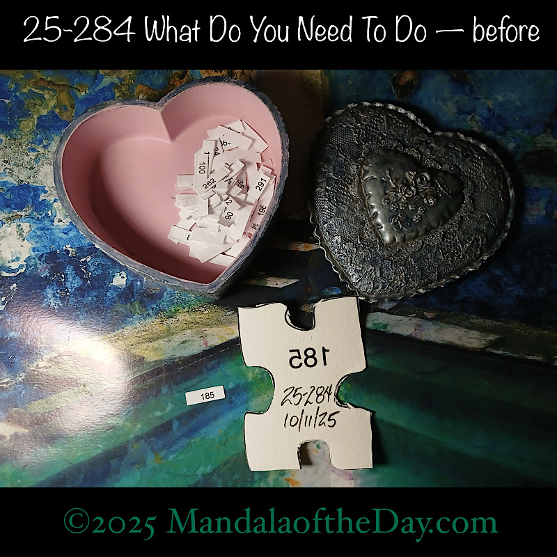 BTW…Here’s the before…the front and back view of today’s puzzle piece and the pretty ceramic box that holds all my numbers from which I randomly choose each day’s puzzle piece number: