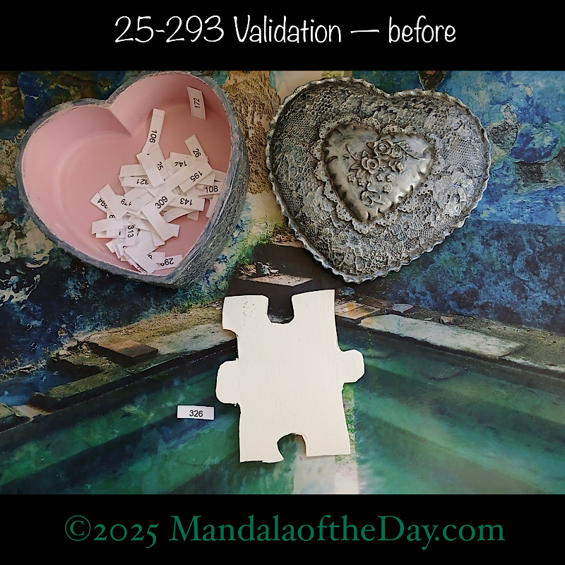 BTW…Here’s the before…the front and back view of today’s puzzle piece and the pretty ceramic box that holds all my numbers from which I randomly choose each day’s puzzle piece number: