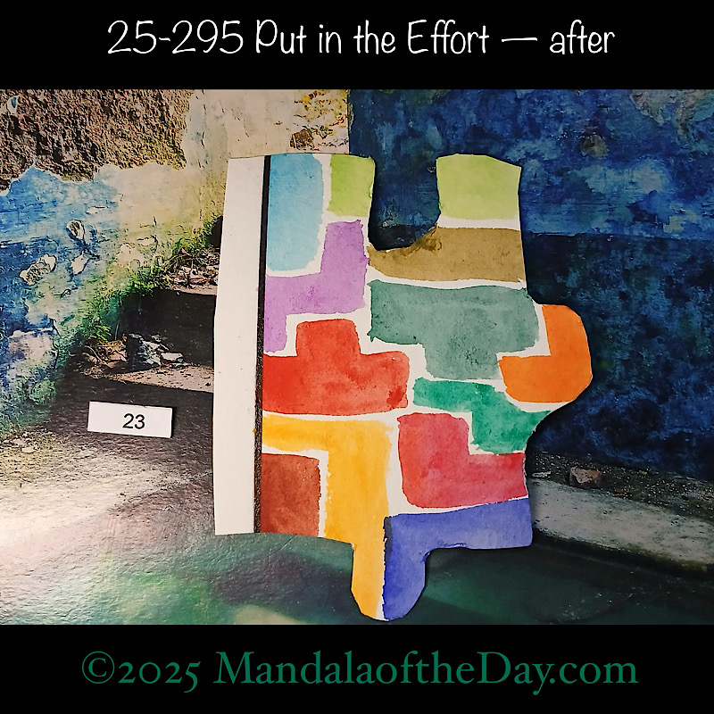 Each day, at random, I’ll be painting in watercolors one of the 365 watercolor puzzle pieces, that by the end of the year will become Archangel Mandala #4. Read more about the Archangel Series. The word/message for each piece will be inspired by Melody Beattie’s book “52 Weeks of Conscious Contact”.