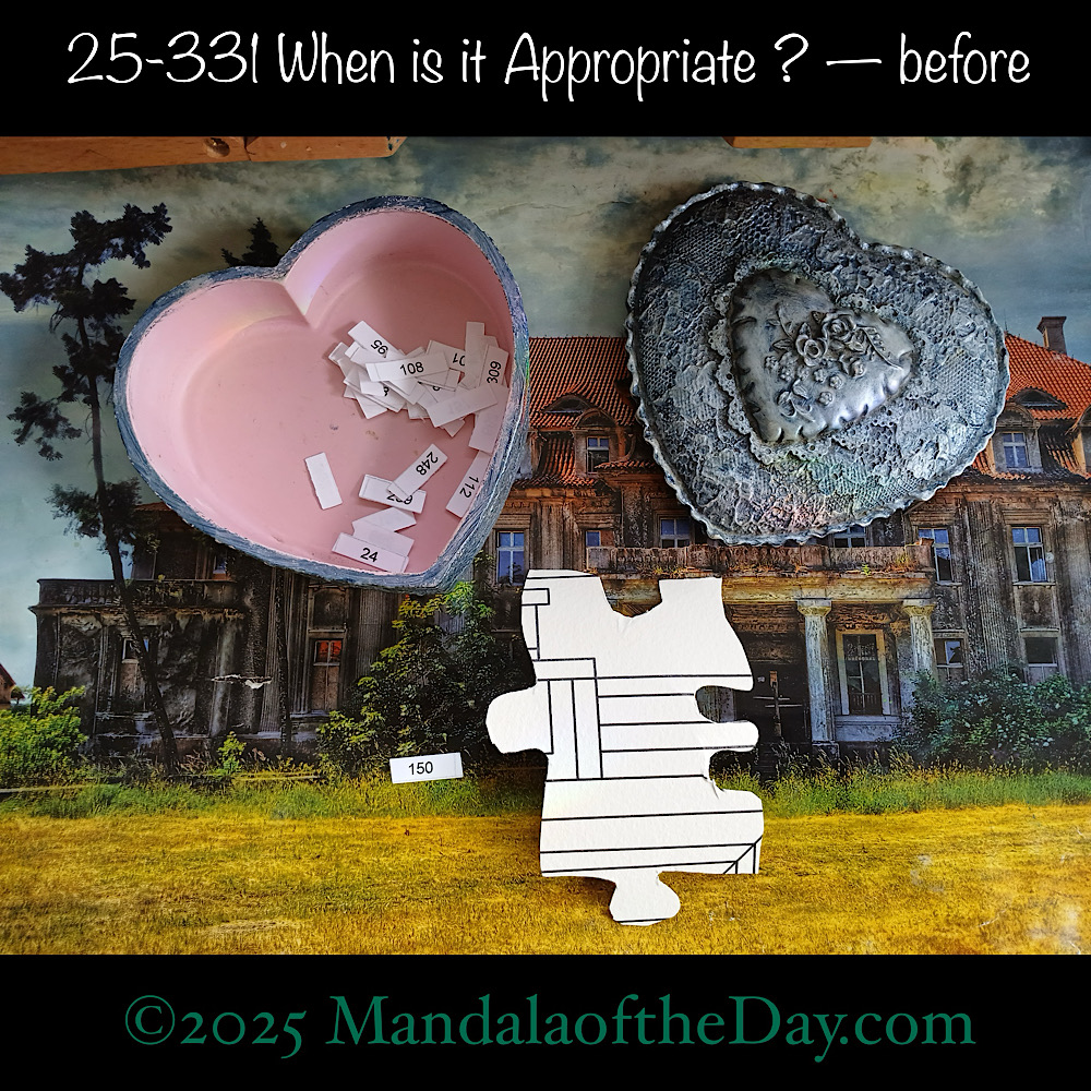 BTW…Here’s the before…the front and back view of today’s puzzle piece and the pretty ceramic box that holds all my numbers from which I randomly choose each day’s puzzle piece number: