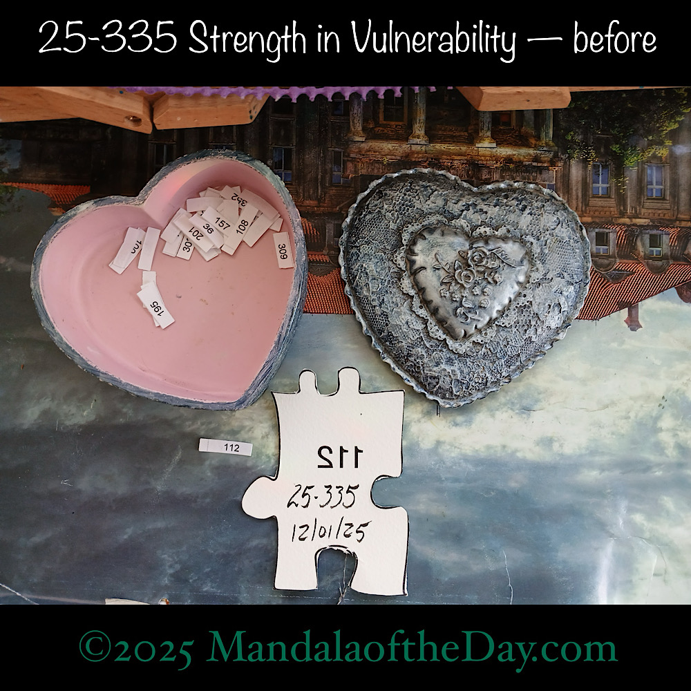 BTW…Here’s the before…the front and back view of today’s puzzle piece and the pretty ceramic box that holds all my numbers from which I randomly choose each day’s puzzle piece number: