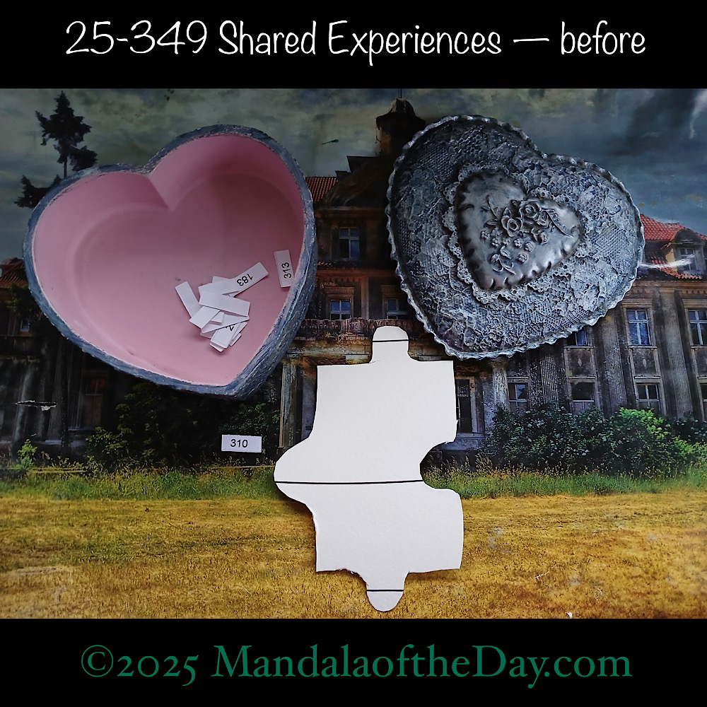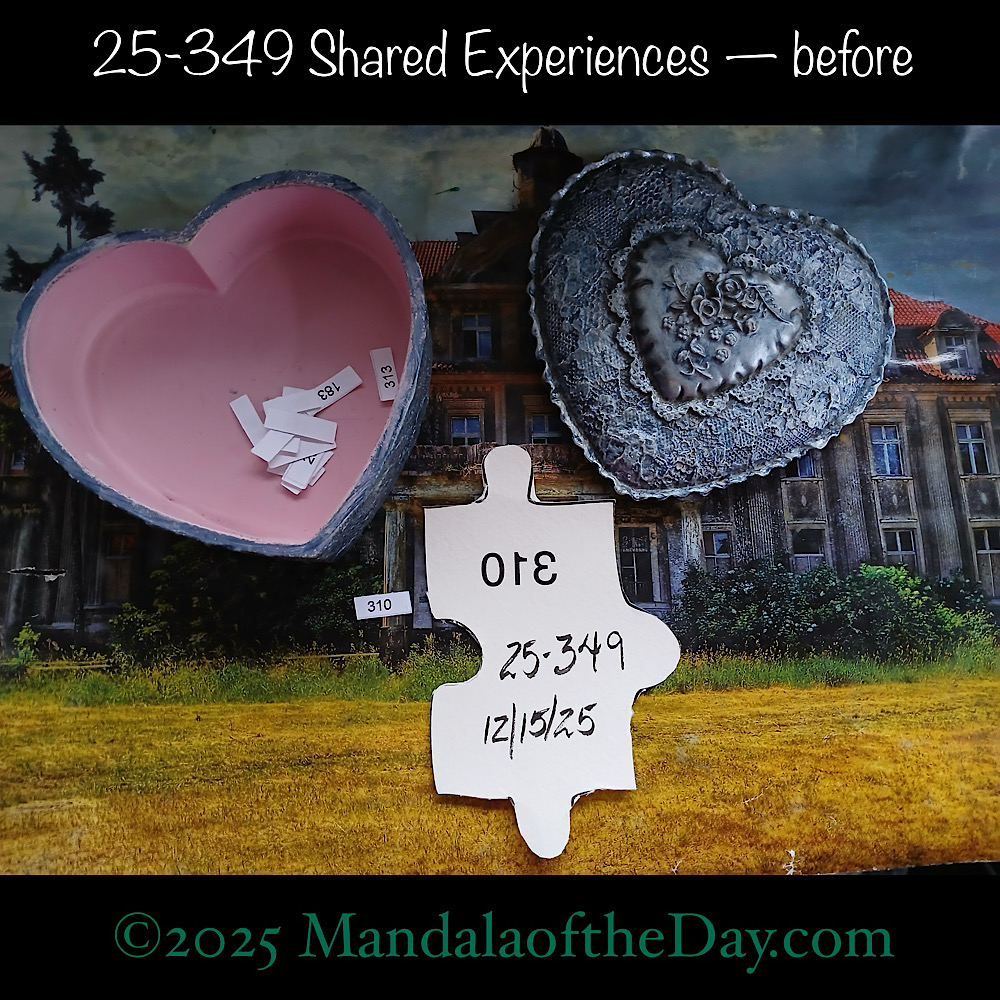 BTW…Here’s the before…the front and back view of today’s puzzle piece and the pretty ceramic box that holds all my numbers from which I randomly choose each day’s puzzle piece number: