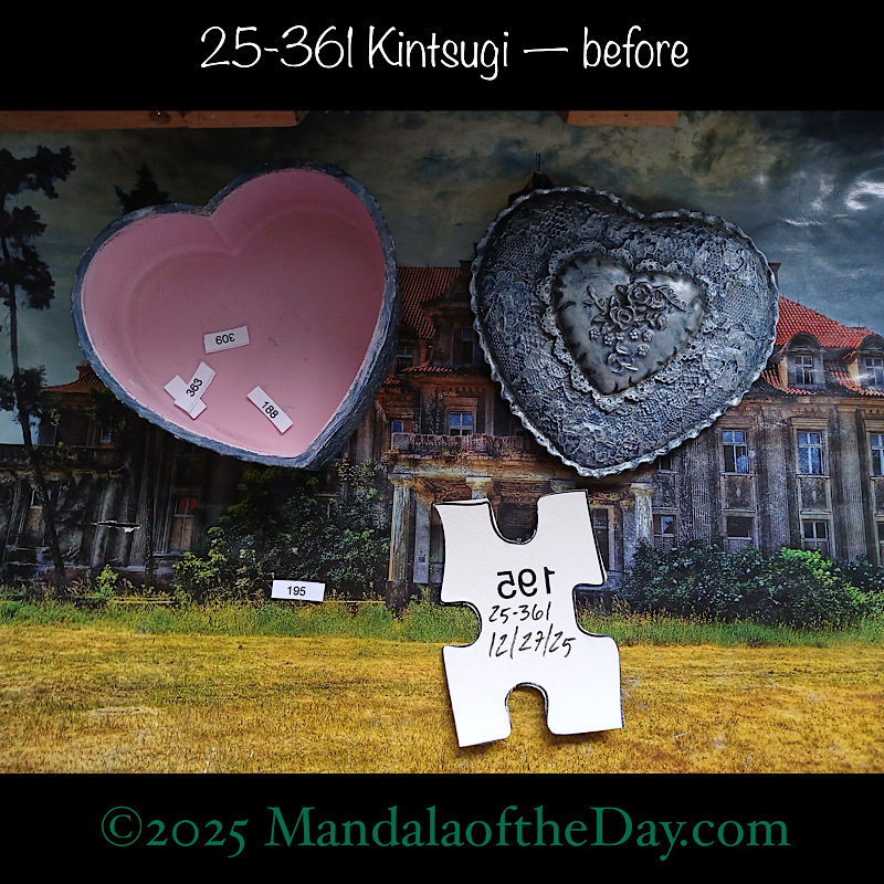 BTW…Here’s the before…the front and back view of today’s puzzle piece and the pretty ceramic box that holds all my numbers from which I randomly choose each day’s puzzle piece number: